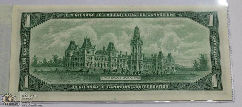 UNCIRCULATED CANADIAN CENTENNIAL $1 DOLLAR BILL