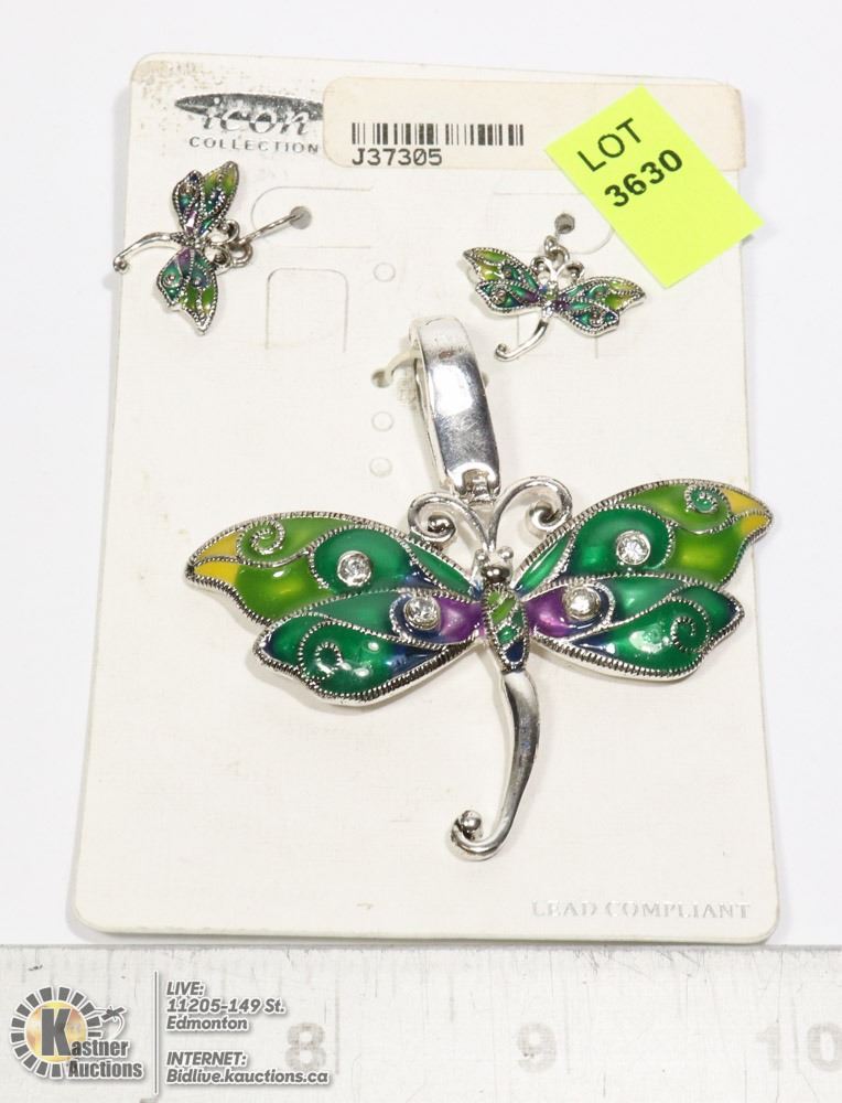 UNCLAIMED DRAGONFLY EARRING AND PENDANT SET