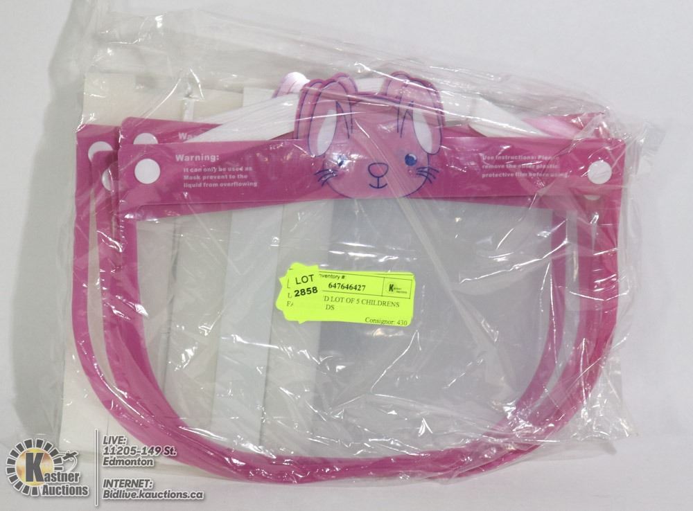 UNCLAIMED LOT OF 5 CHILDRENS FACE SHIELDS