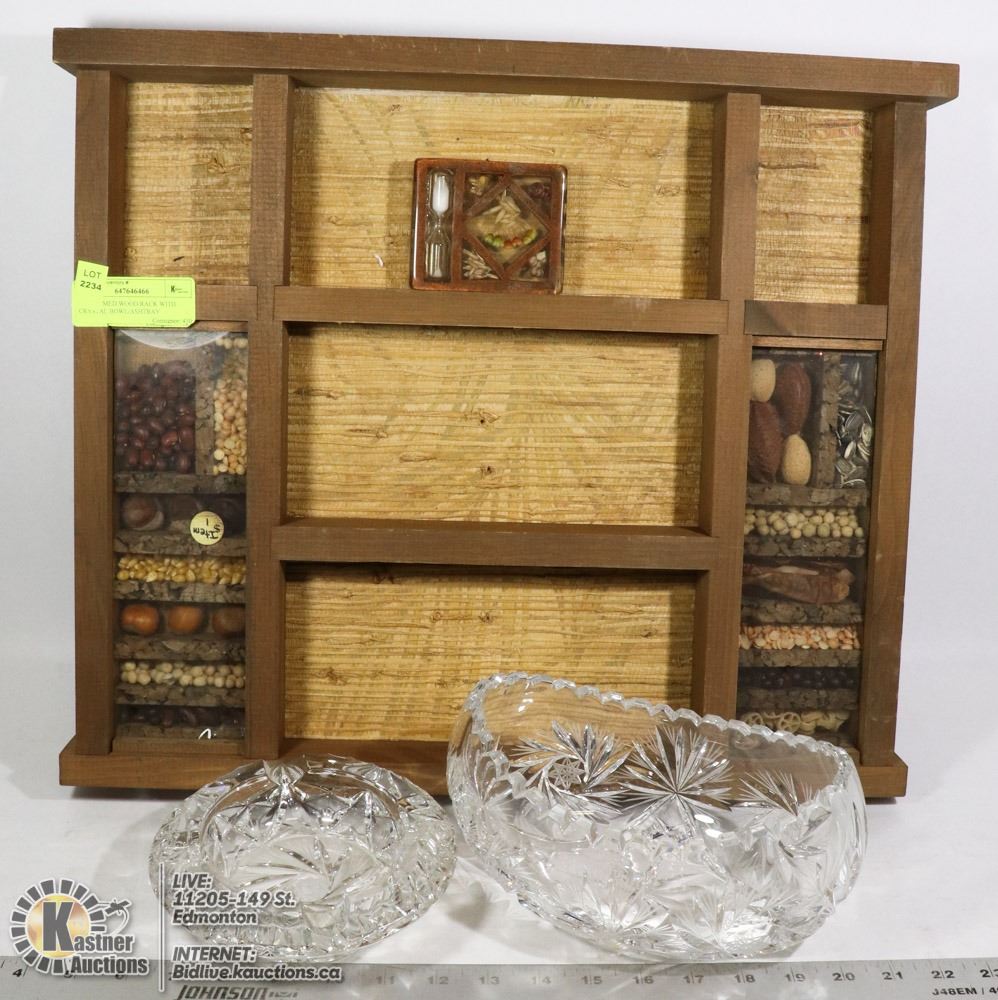 UNCLAIMED WOOD RACK WITH CRYSTAL BOWL/ASHTRAY