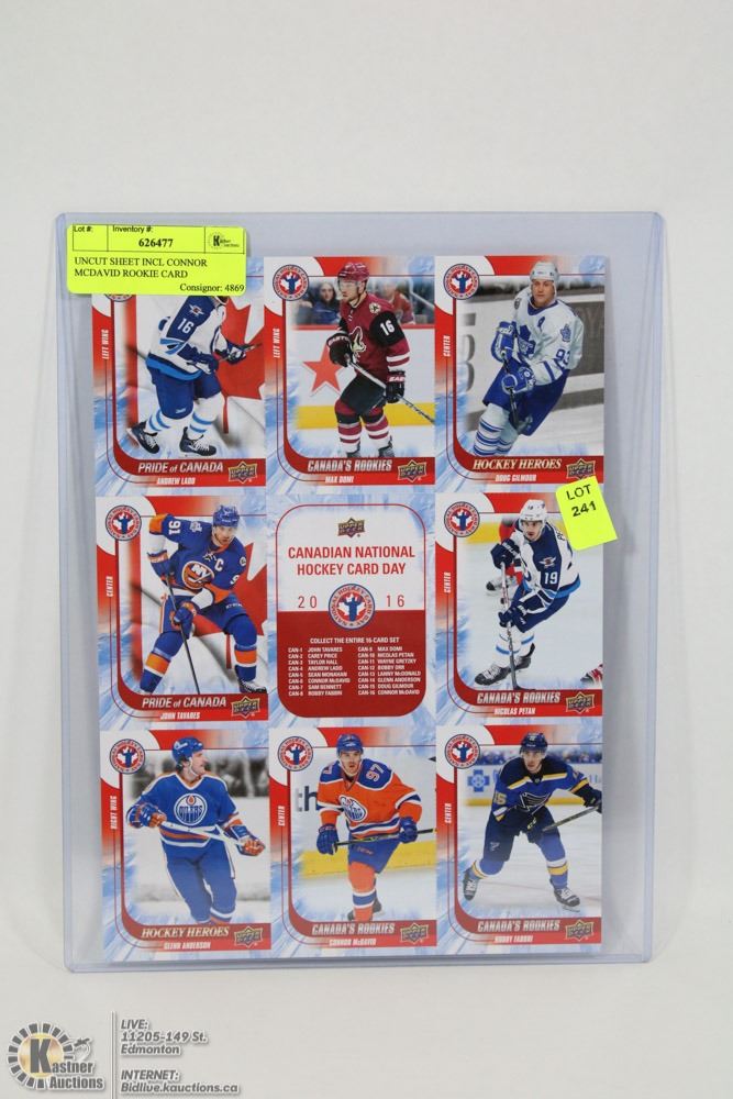 UNCUT SHEET INCL CONNOR MCDAVID ROOKIE CARD