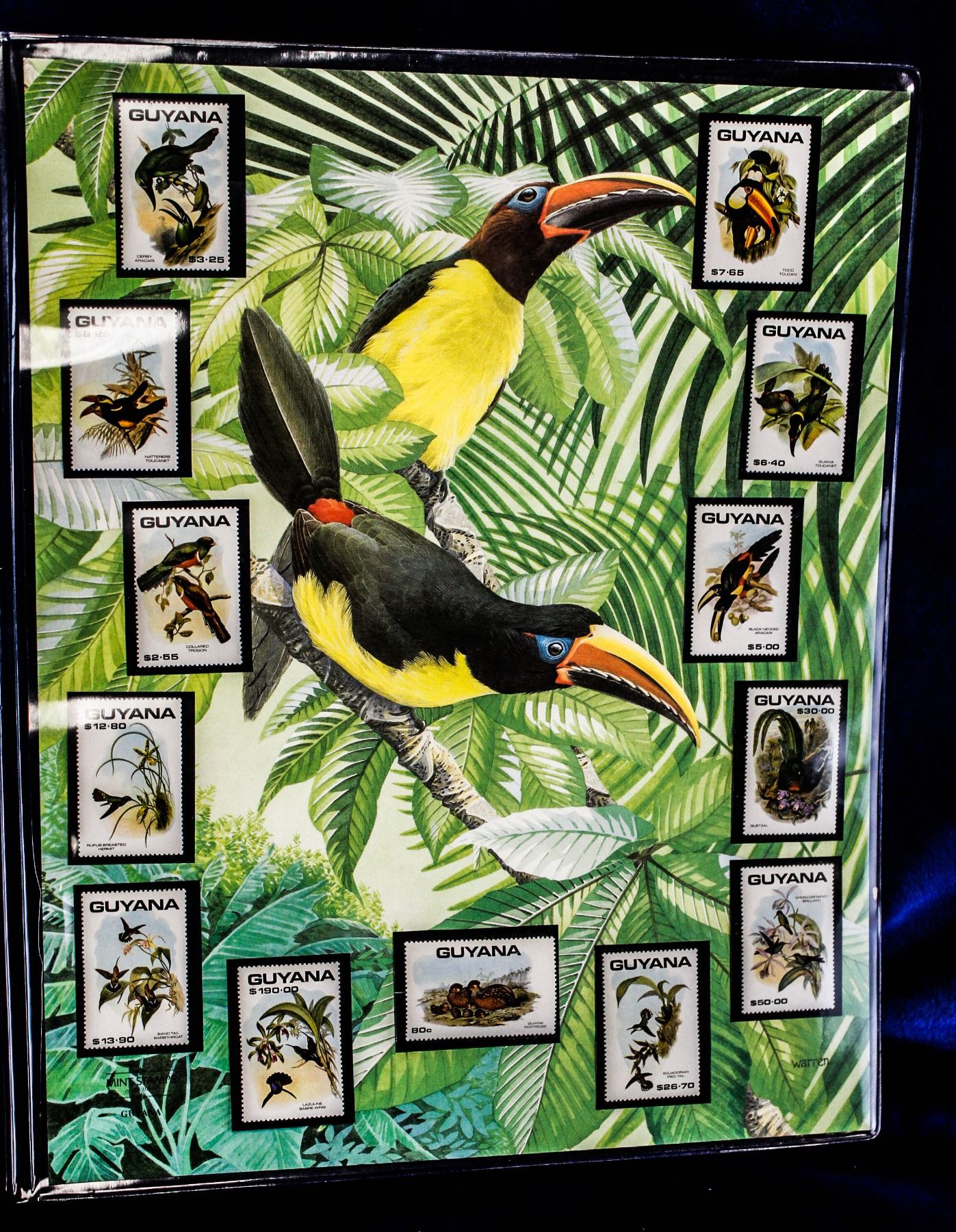 UNFRAMED TROPICAL BIRD PRINT WITH GUYANA STAMPS