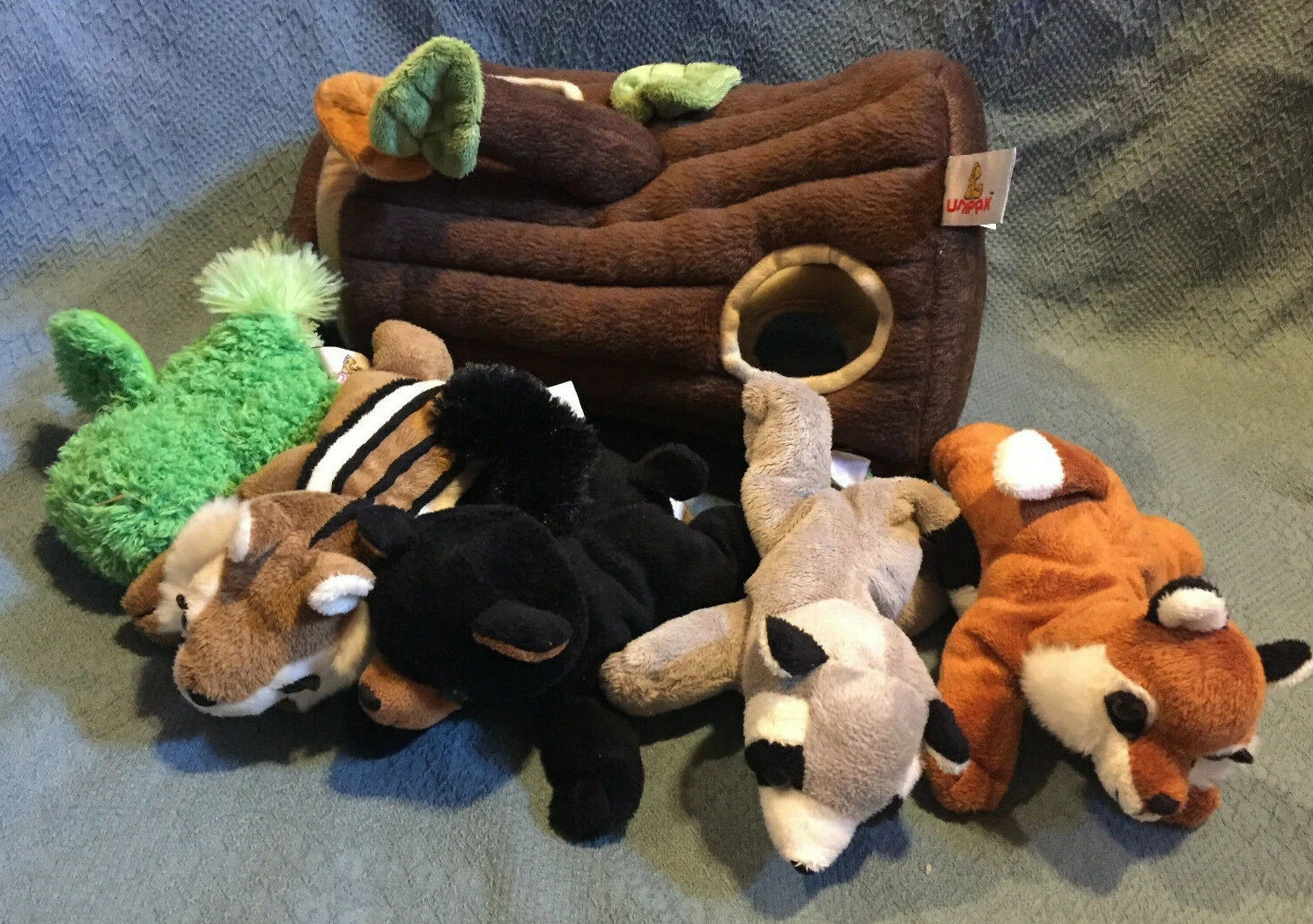 UNIPAK TREE HOUSE STUFFED HOLLOW LOG 5 PLUSH ANIMALS PLAY TOY HAS A ASO