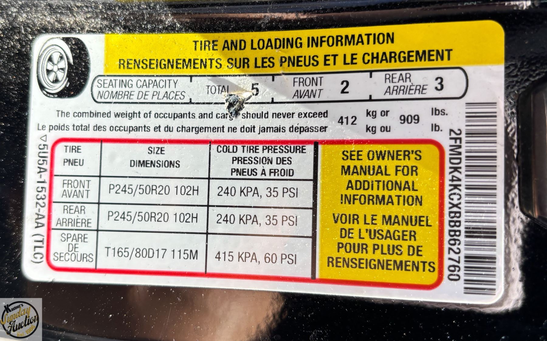 VIN: 2FMDK4KCXBBB62760