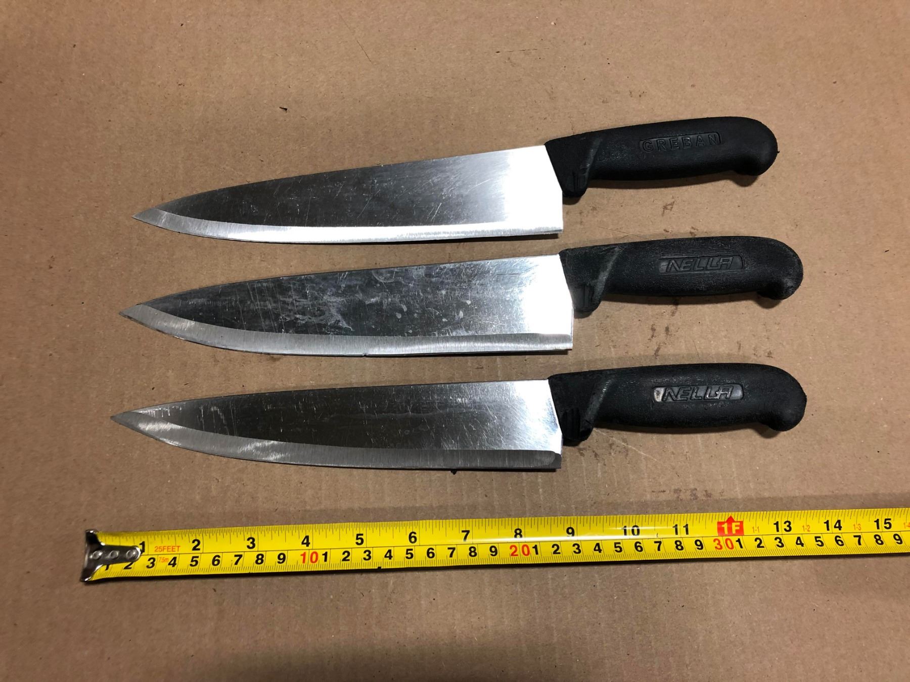 KCW - USED SHARPENED KNIVES BLACK HANDLE - LOT OF 3