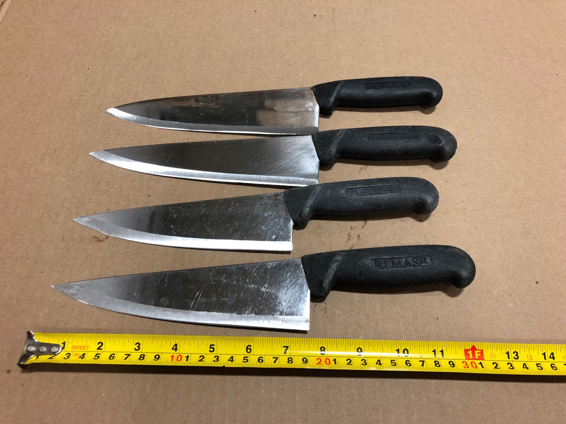 KBY - USED SHARPENED KNIVES BLACK HANDLE - LOT OF 4