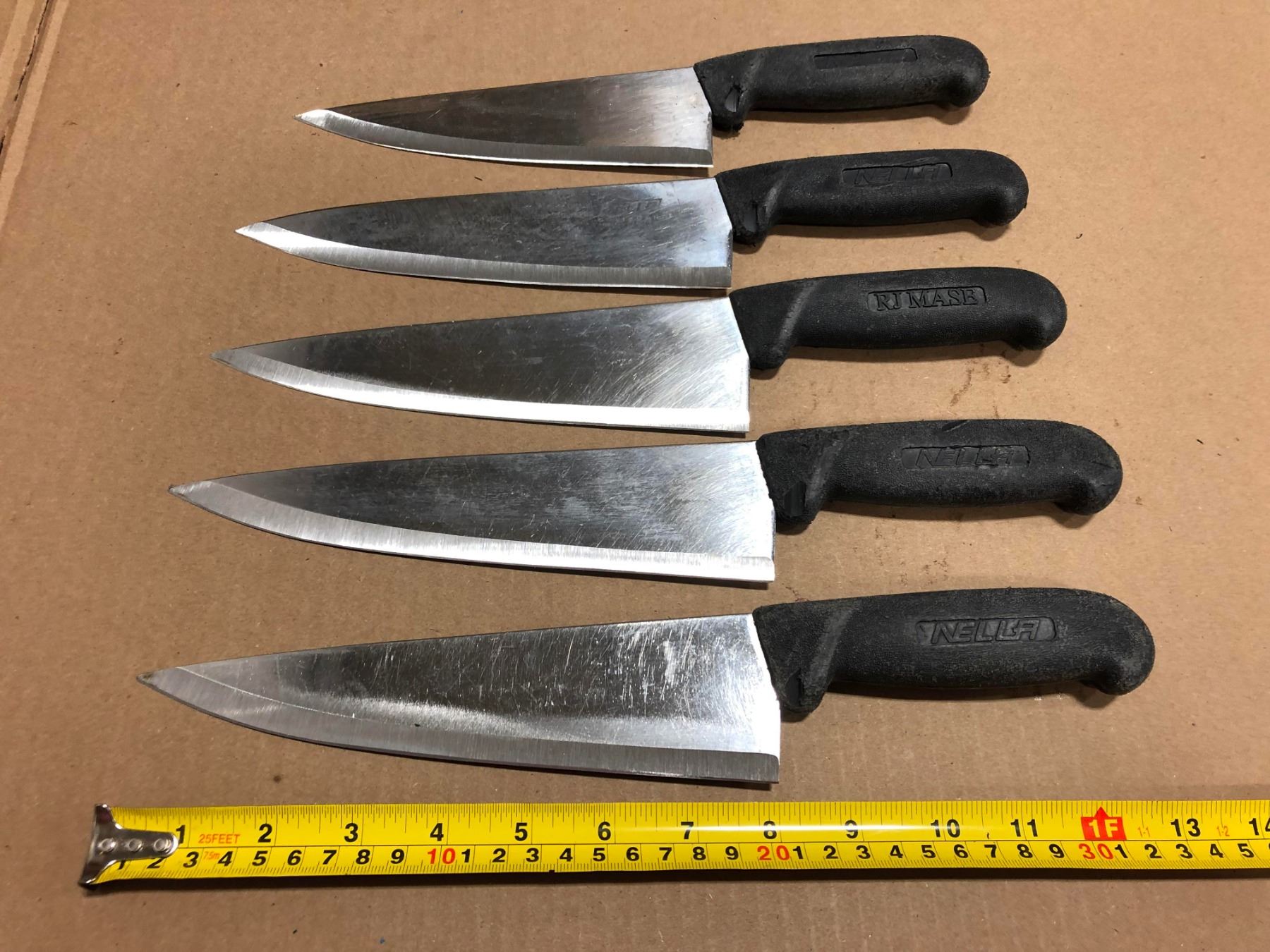 KAY - USED SHARPENED KNIVES BLACK HANDLE - LOT OF 5