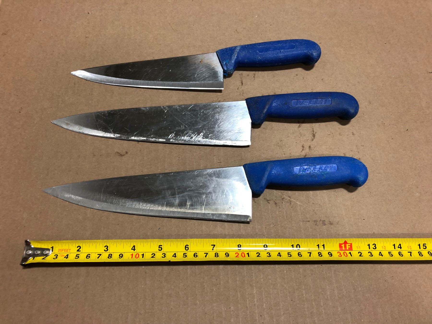 KCJ - USED SHARPENED KNIVES BLUE HANDLE - LOT OF 3