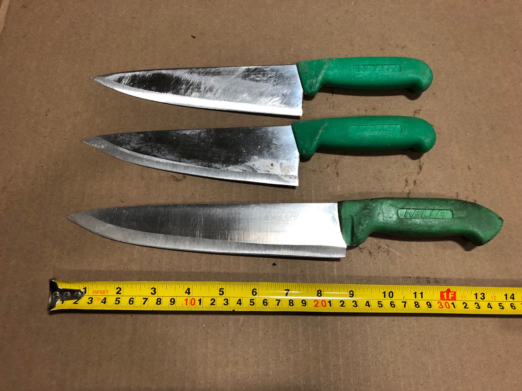KCU - USED SHARPENED KNIVES GREEN HANDLE - LOT OF 3