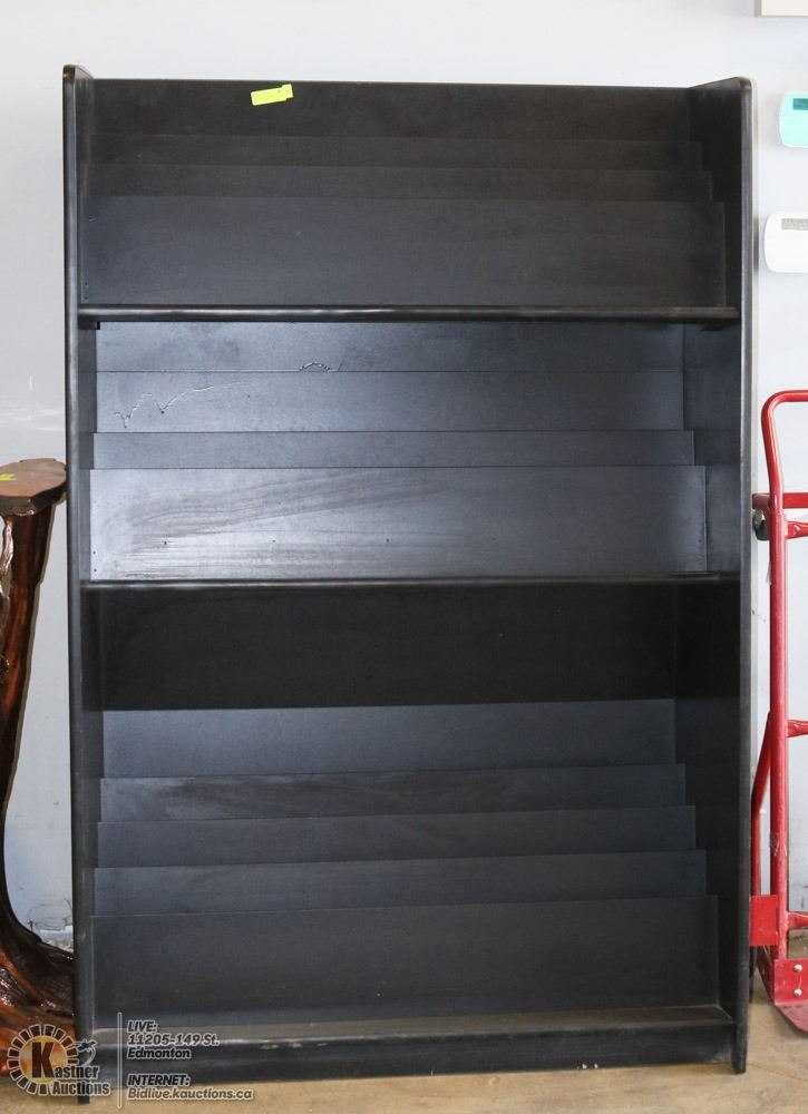 USED UPRIGHT WOODEN FILE RACK BLACK IN COLOR