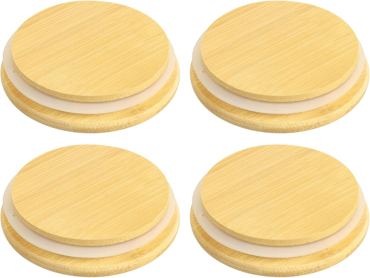 UXCELL 4PCS 3.46 INCH BAMBOO LIDS WITH SILICONE SEALING RINGS, MASON JAR LIDS BAMBOO LIDS FOR MASON JARS WIDE MOUTH CANNING JAR LIDS BALL JARS LIDS WITH SILICONE SEA FOR STORAGE | Category: Home Goods & Decor