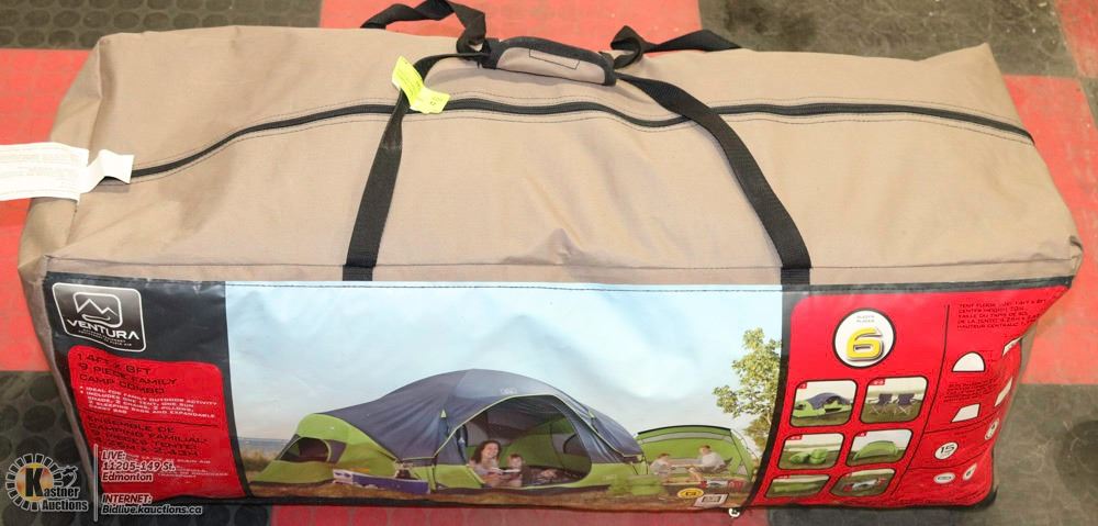 INCLUDES 6 PERSON TENT, 2 SLEEPING BAGS, 2 CHAIRS, ETC