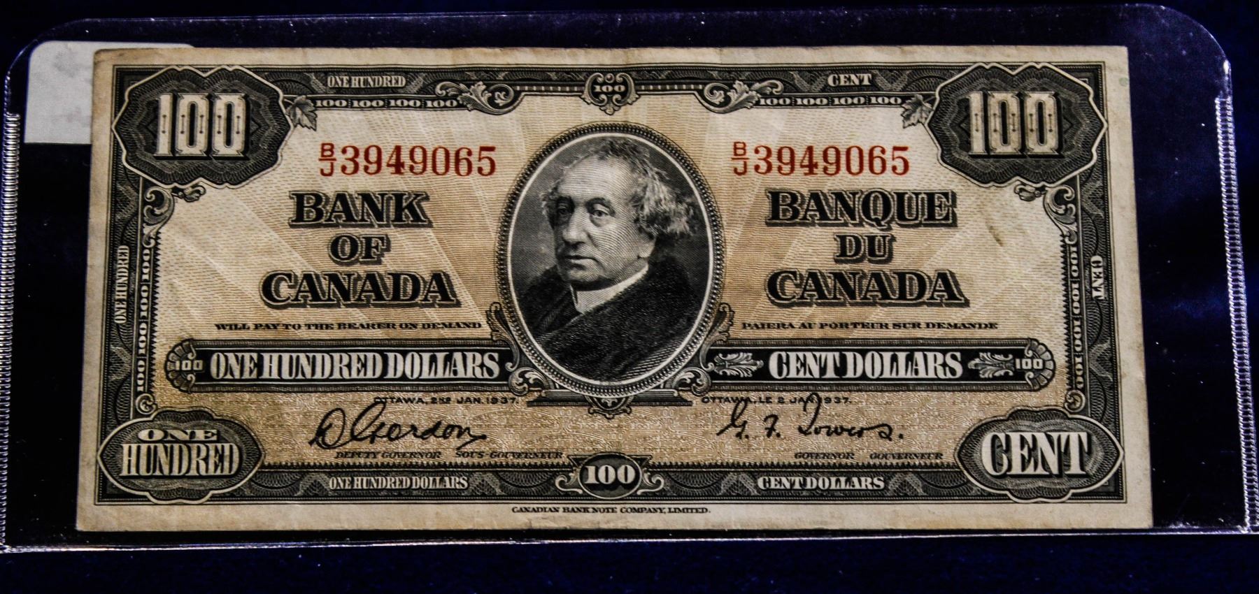 VERY FINE+ 1937 CANADA $100 BANKNOTE