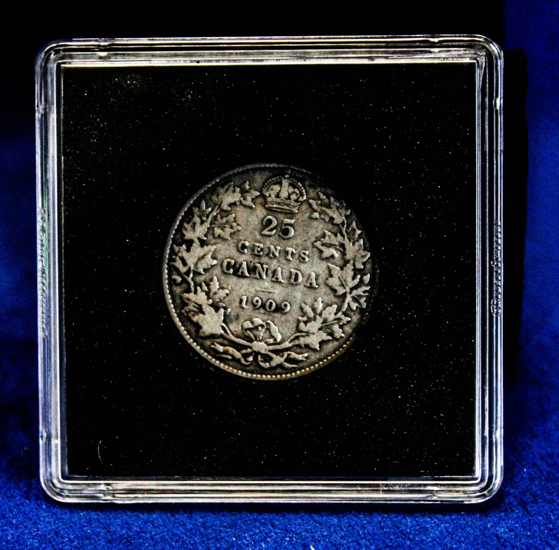 VG+ CONDITION 1909 CANADA SILVER 25 CENT