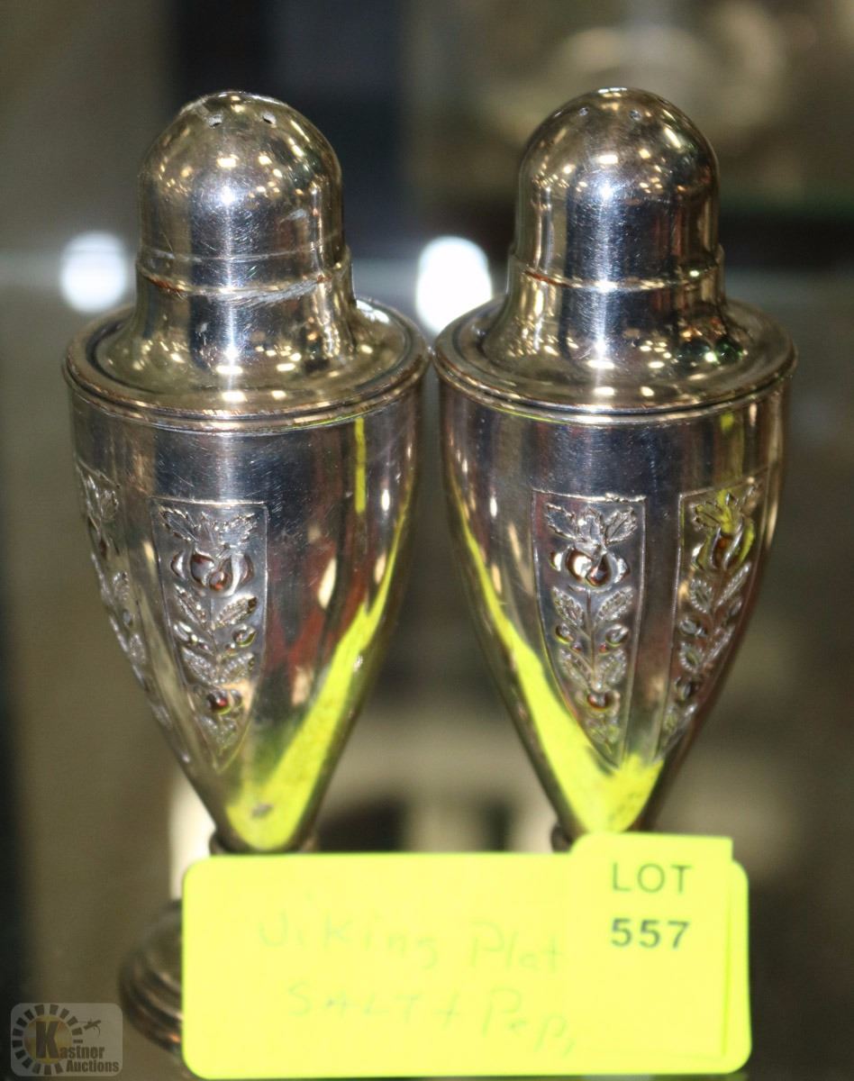 VIKING PLATE SILVERPLATED SALT AND PEPPER SHAKERS