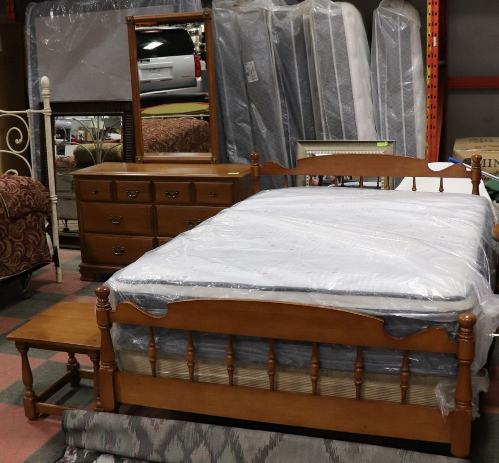 MIRROR (25.5"X41.5") AND NIGHT STAND (18"X18"X16"), DOUBLE SIZE HEAD BOARD, FOOT BOARD AND RAILS **MATTRESSES NOT INCLUDED**. GENERAL HOME