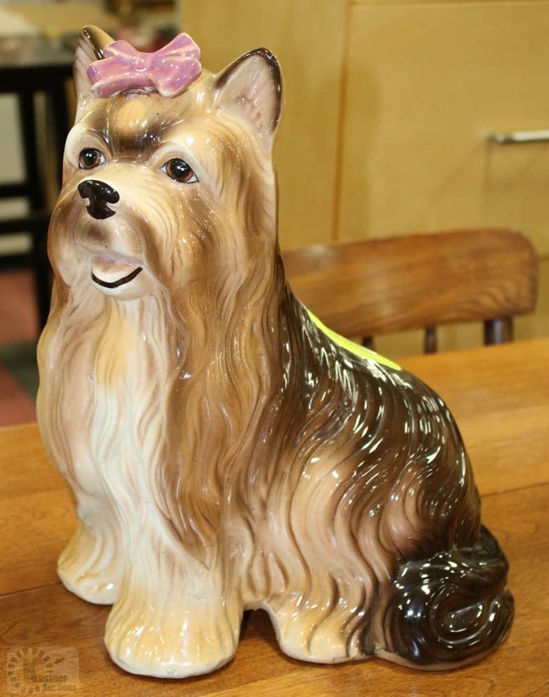 VINTAGE 13" GLAZED CERAMIC LHASA APSO DOG FIGURINE