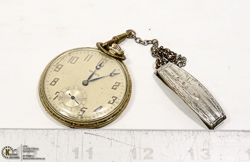 CROWN WIND IN GOLD FILLED CASE. RUNNING WELL WITH VINTAGE CHAIN.