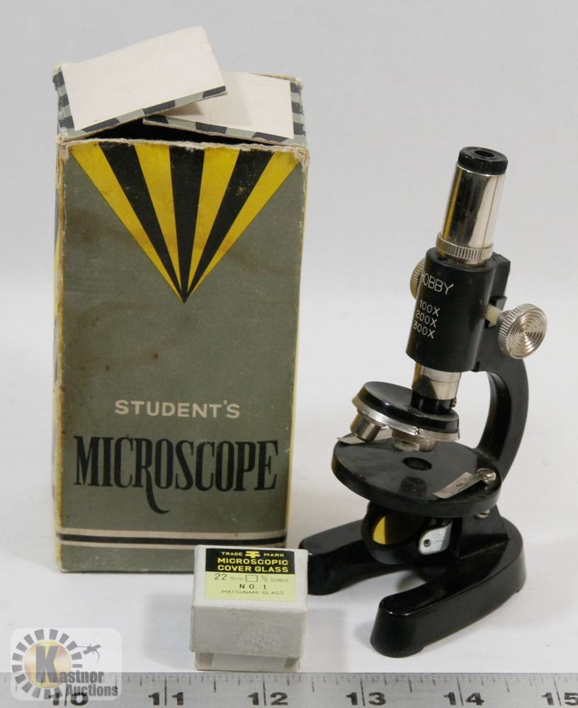 MINI MICROSCOPE 100X 200X 300C W/SLIDES & ORIGINAL BOX MADE IN JAPAN. COLLECTIBLES