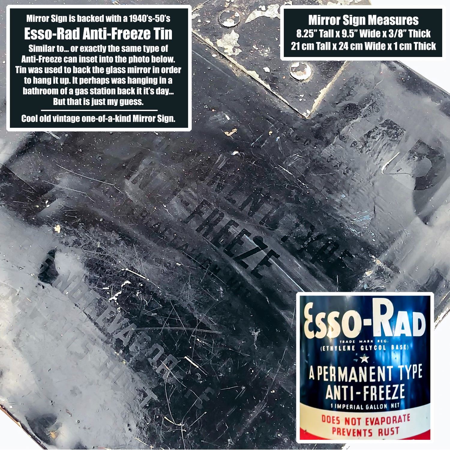 #8641 - HAND CRAFTED SIGN IS BACKED WITH A 1940’S/50’S IMPERIAL ESSO-RAD ANTI-FREEZE TIN - SEE PHOTOS. SIZE: 8.25” (21 CM) TALL, 9.5” (24 CM) WIDE, 3/8” (1 CM) THICK***ITEM(S) LOCATED IN LETHBRIDGE ALBERTA. ALL ITEMS IN THIS AUCTION QUALIFY FOR OUR FREE TRANSPORT TO EDMONTON SERVICE. WORLDWIDE SHIPPING AVAILABLE