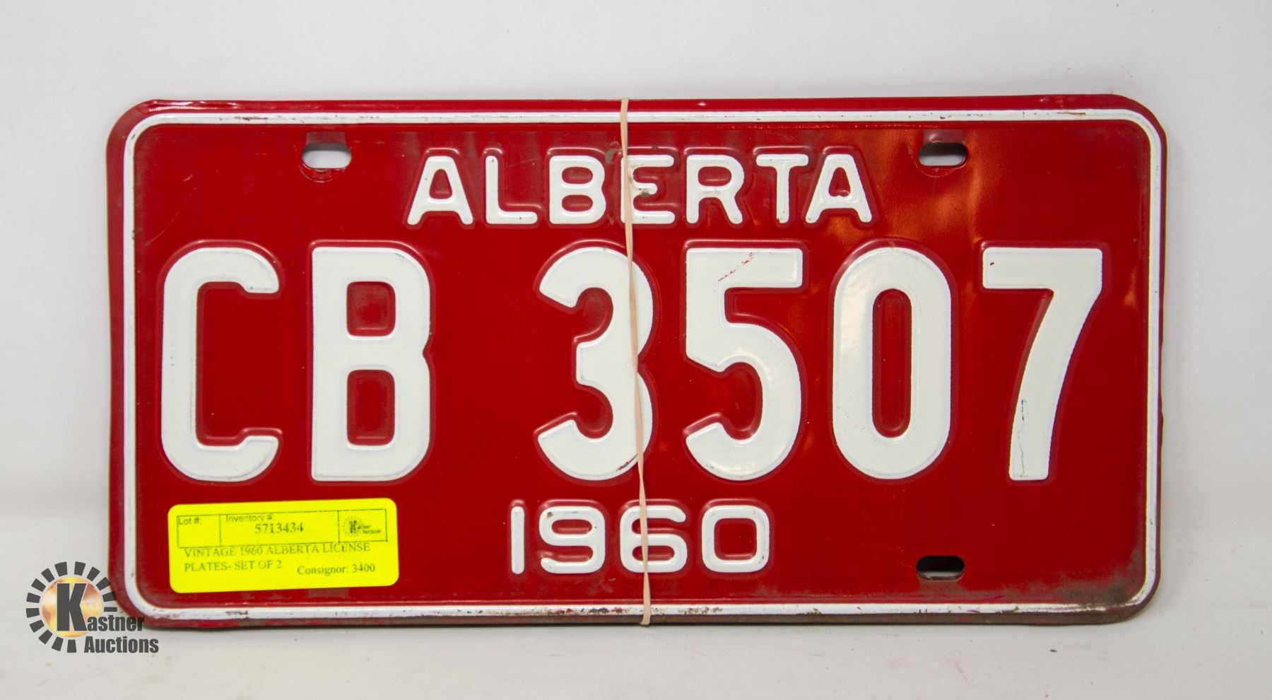 VINTAGE 1960 ALBERTA LICENSE PLATES- SET OF 2