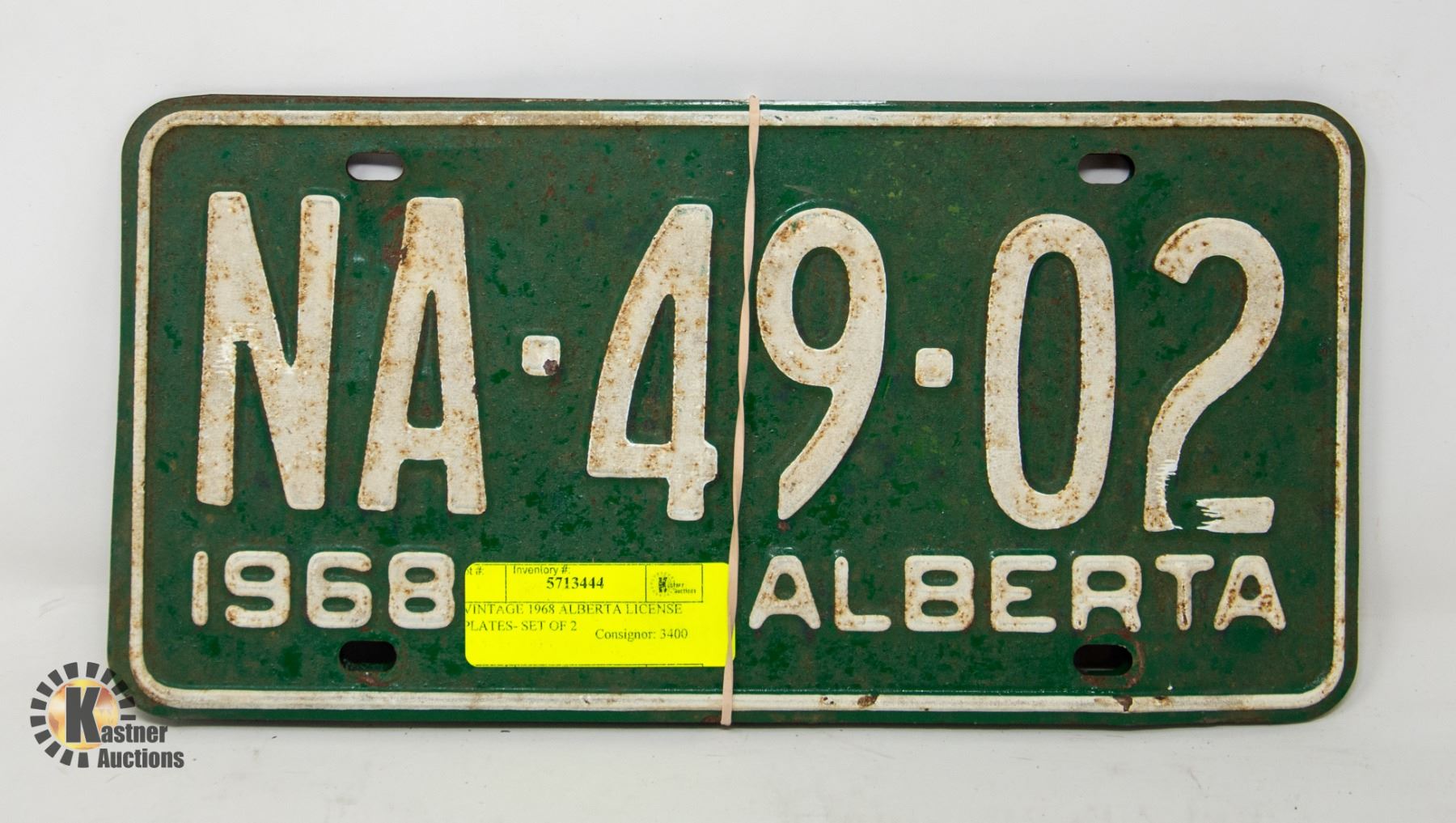 VINTAGE 1968 ALBERTA LICENSE PLATES- SET OF 2