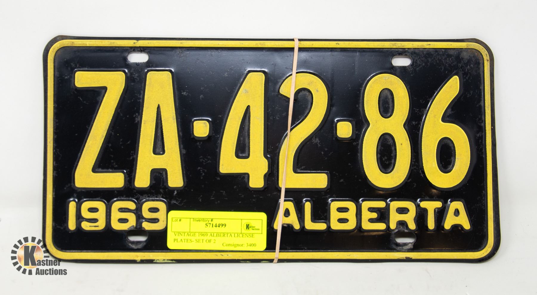 VINTAGE 1969 ALBERTA LICENSE PLATES- SET OF 2