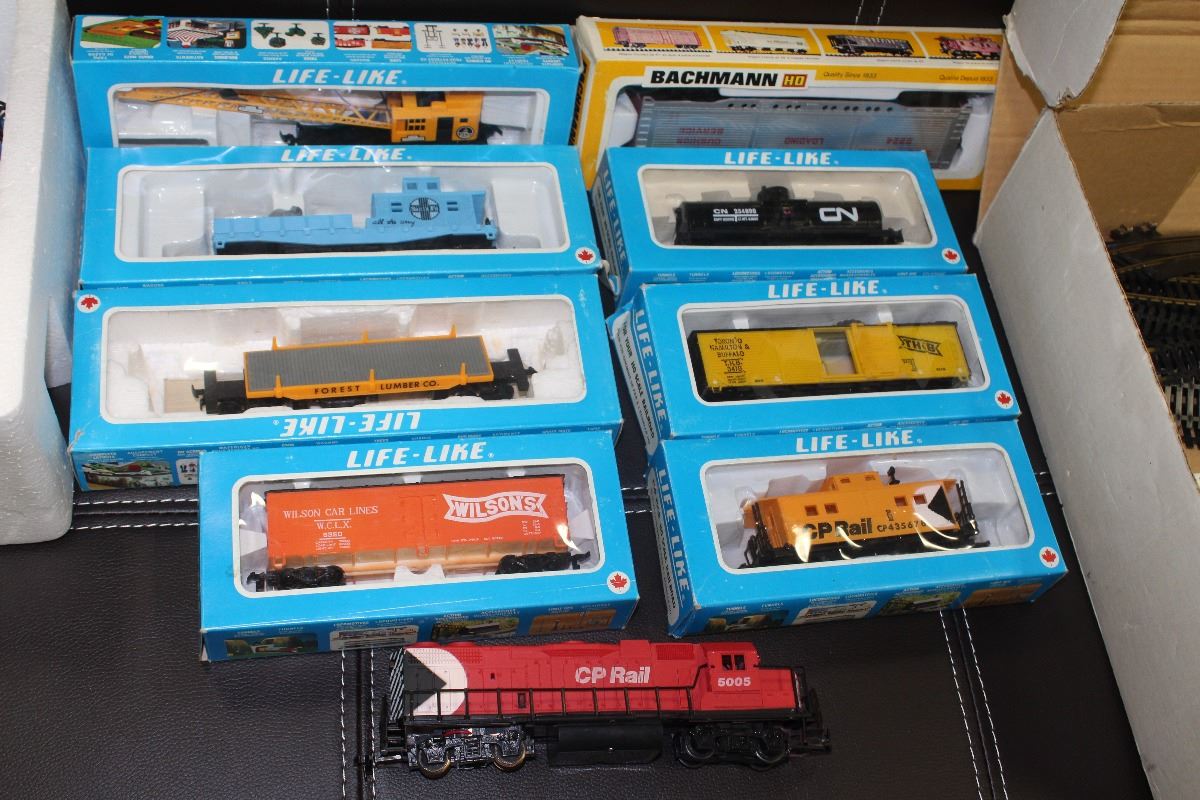 MADE IN HONG KONG COMES WITH CP DIESEL ENGINE,CRANE CAR, CN TANK CAR,WILSON REEFER, TH&B BOX CAR,CP CABOOSE,SANTA FE SEARCH LIGHT CAR AND BACHMANN SOUTHERN RAIL CAR,