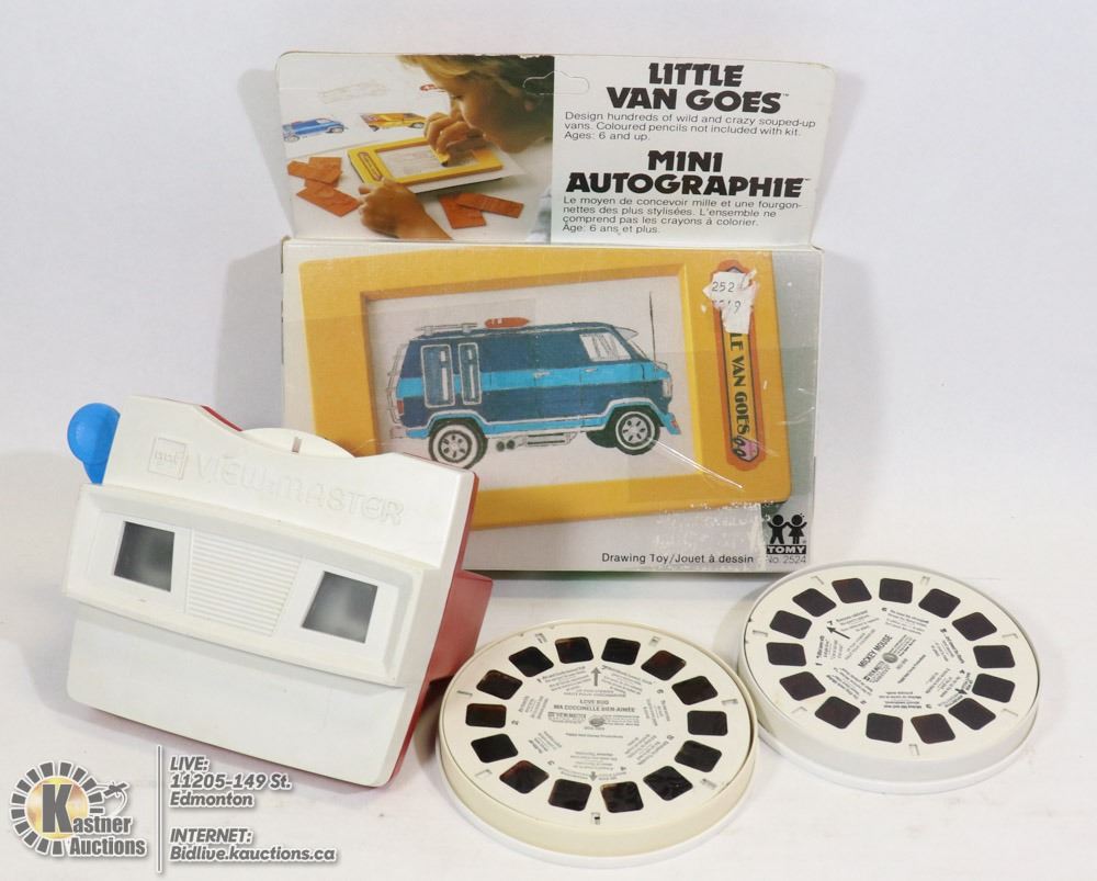 VAN DRAWING KIT WITH PLATES #2524 (UNUSED) W/GAF VIEW MASTER 21 DISC'S MARY POPPINS, SNOW WHITE, DRACULA & MORE. COLLECTIBLES