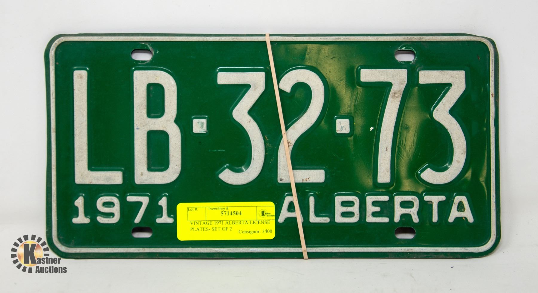 VINTAGE 1971 ALBERTA LICENSE PLATES- SET OF 2