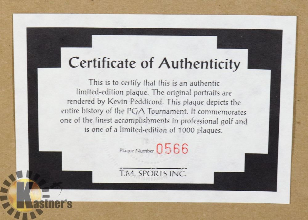 PGA GOLF PLAYERS 1940-2010 TIM SPORTS INC. W/COA & CORPORATE SEAL 11 X 17. COLLECTIBLES