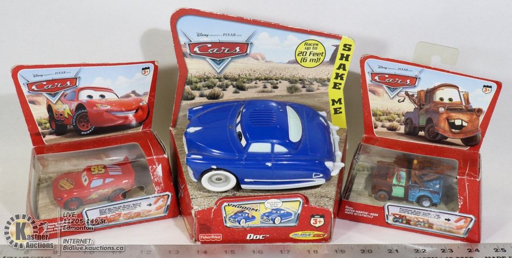 PRICE DIE CAST CARS VROOM DOC, MATEUR, LIGHTENING MCQUEEN (ALL UNOPENED). COLLECTIBLES