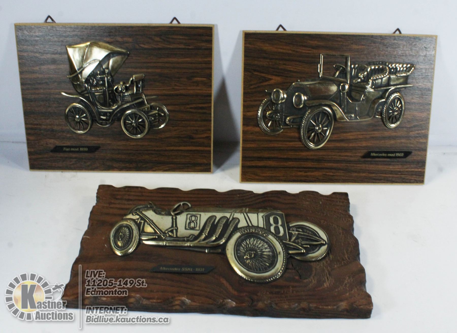WOODEN PLAQUES MERCEDES SSKL. 1931, MERCEDES MOD. 1903, FIAT MOD.1899