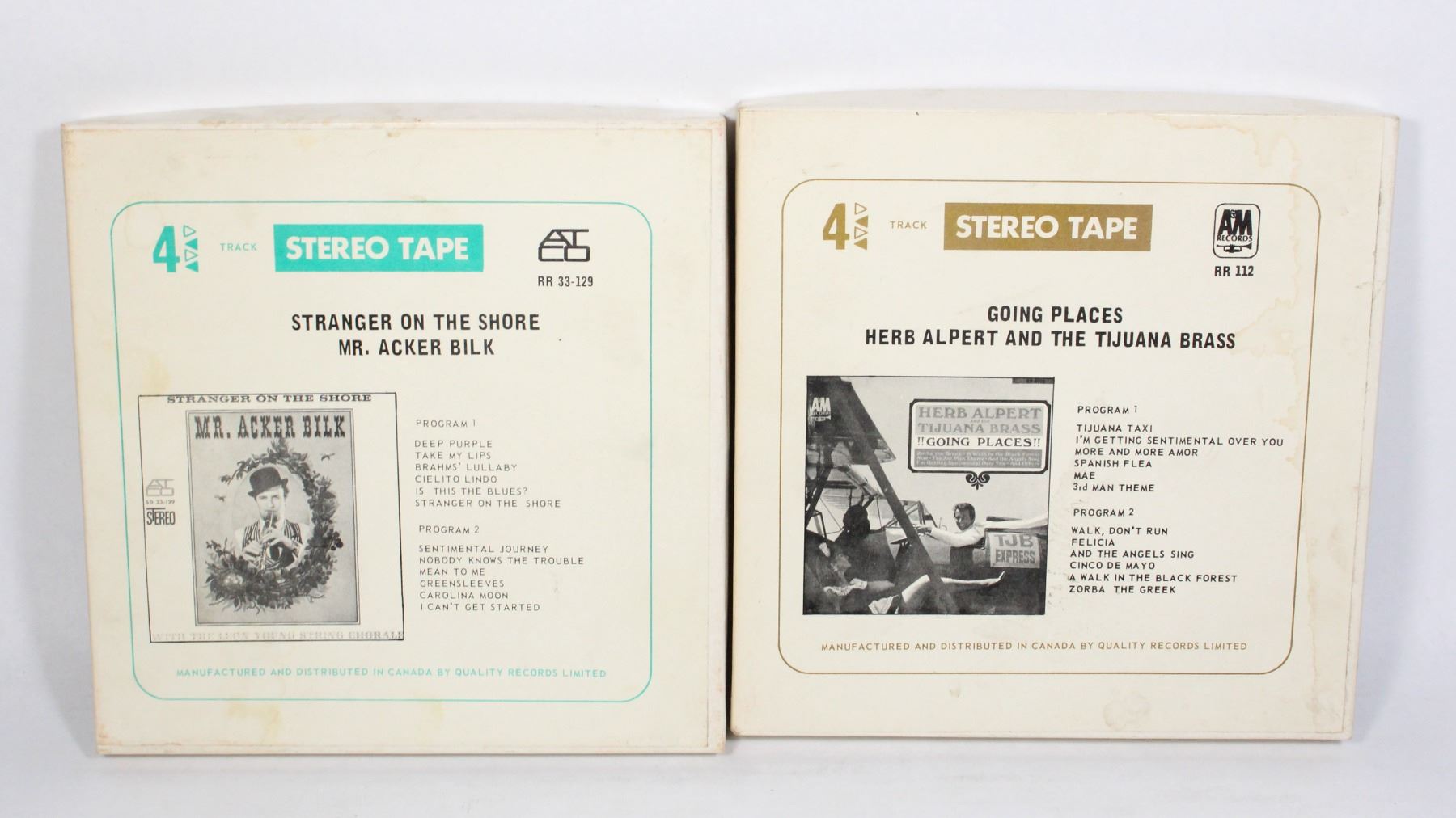 ALBERT AND THE TIJUANA BRASS STEREO TAPE SOLD WITH VINTAGE 4 TRACK STEREO TAPE STRANGER ON THE SHOREMR. ACKER BILK.BOX. (HAS DIFFERENT STEREO TAP IN BOX RUOTA NO. NASTRO R.M.P 3 1/3)