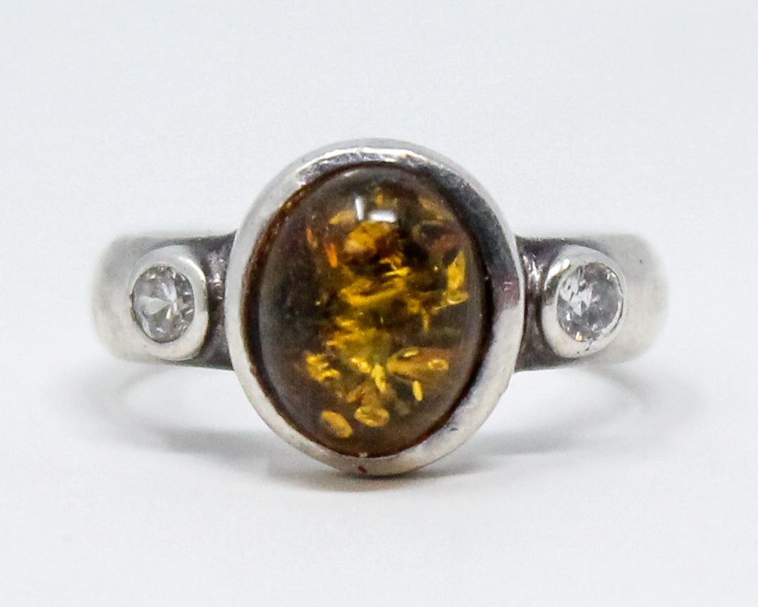 VINTAGE .925 SILVER MARKED AMBER RING, 4.6g