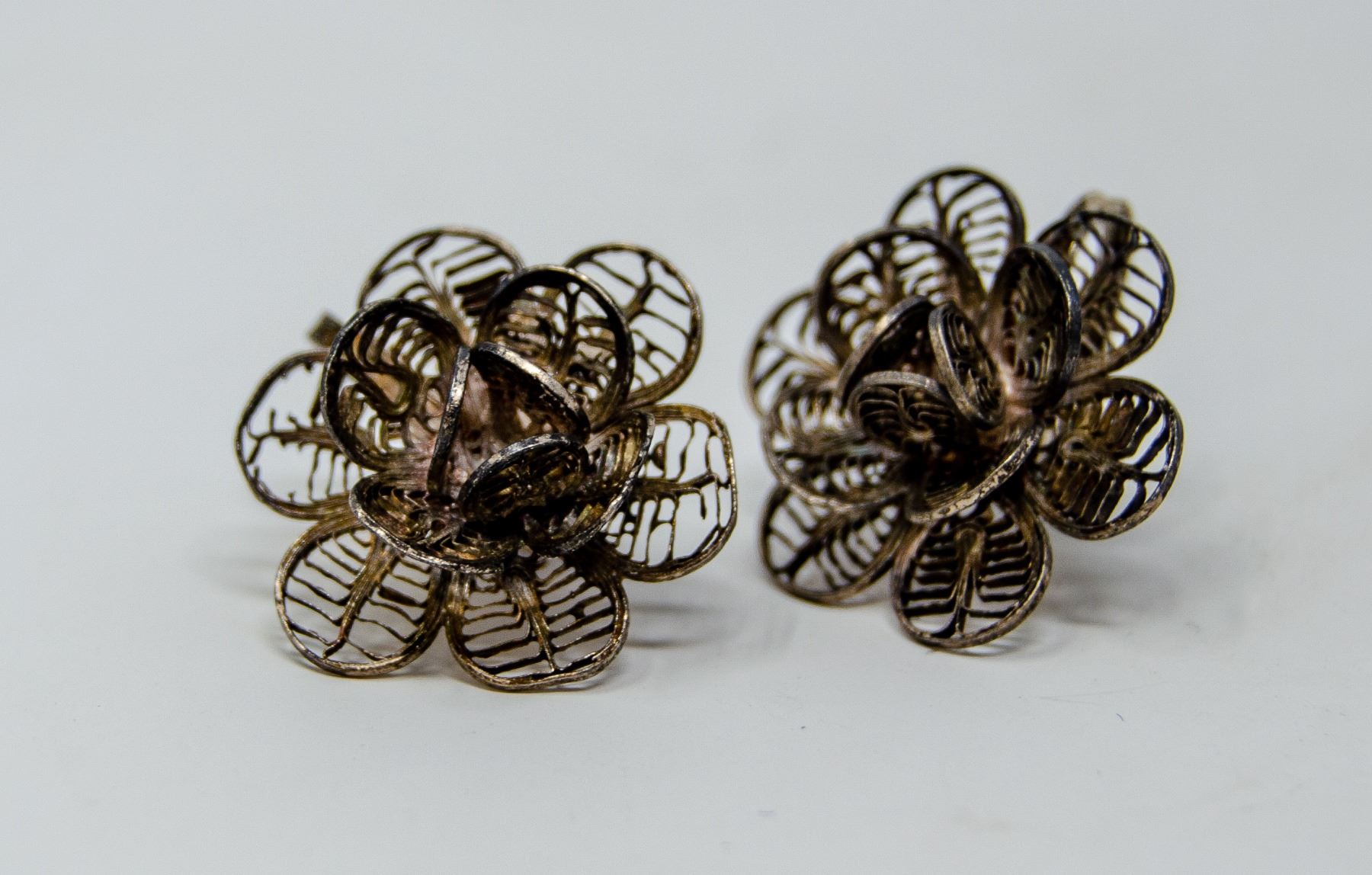 VINTAGE .925 SILVER ROSE STYLE EARRINGS, 6.7g