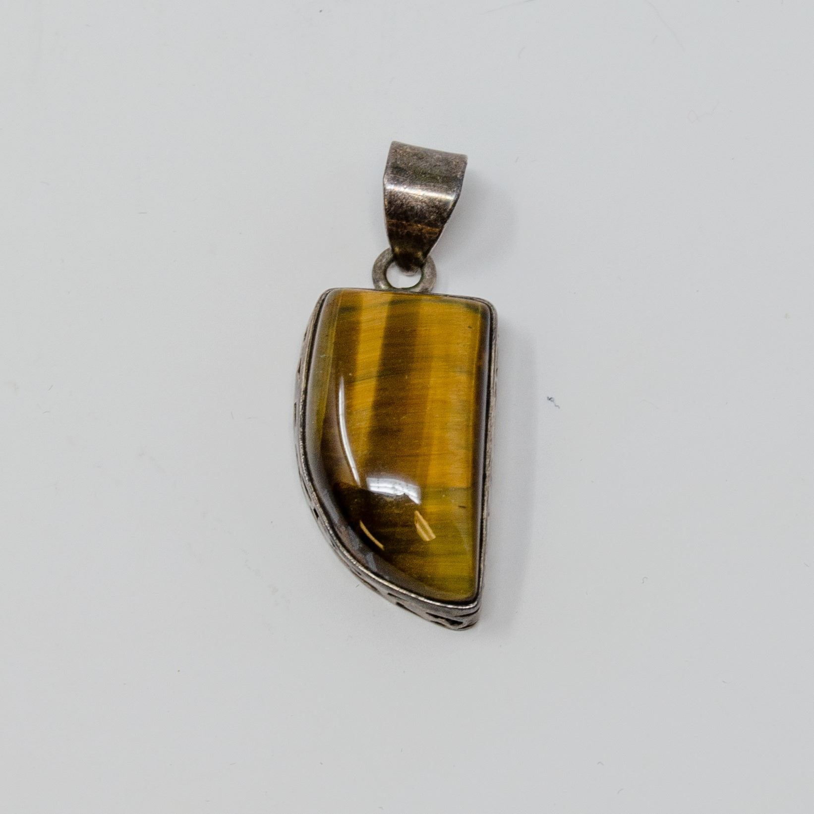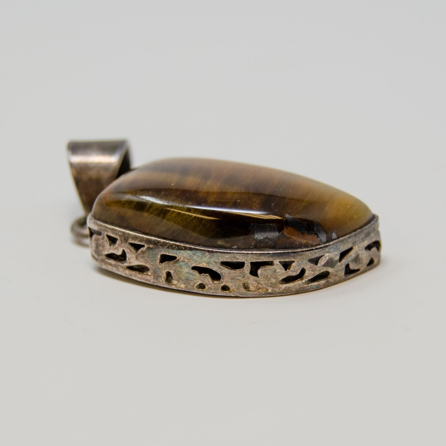 VINTAGE .925 SILVER STAMPED TIGER EYE PENDANT,