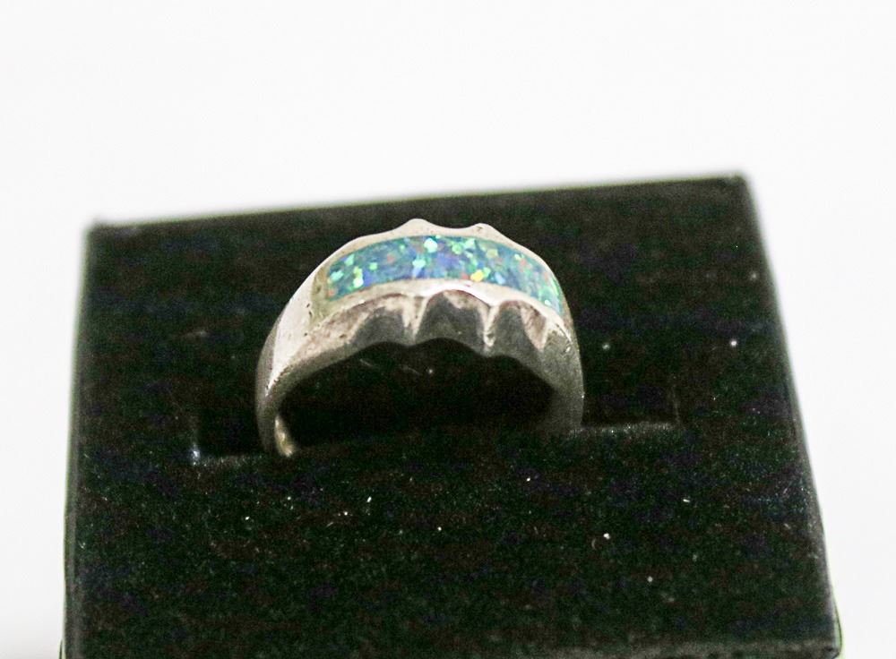 VINTAGE .925 SILVER WITH FAUX OPAL INLAY RING SZ 7