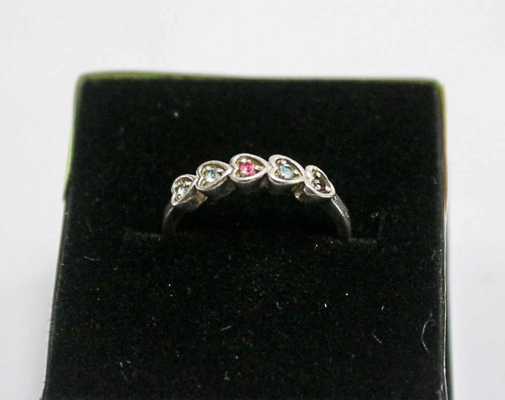 VINTAGE .925 SIVER HEART BIRTHSTONE RING SZ 8