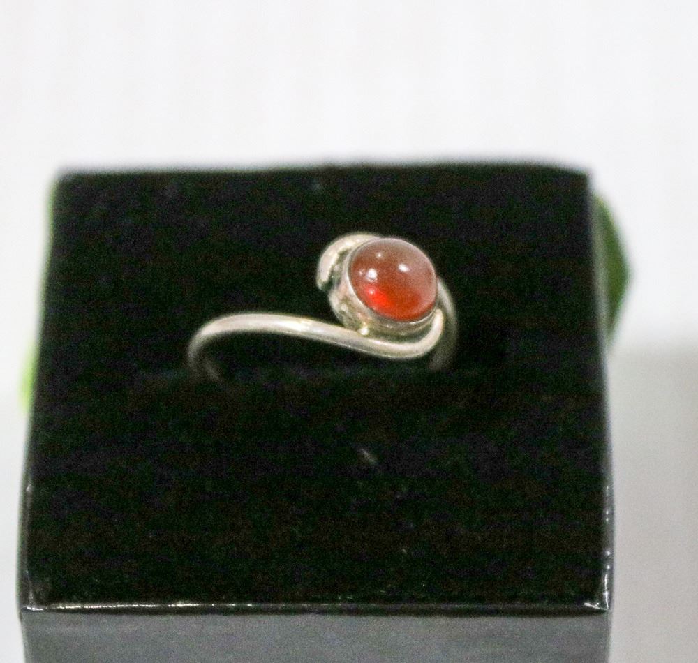 VINTAGE .925 STERLING SILVER AND AMBER RING SZ 7.5