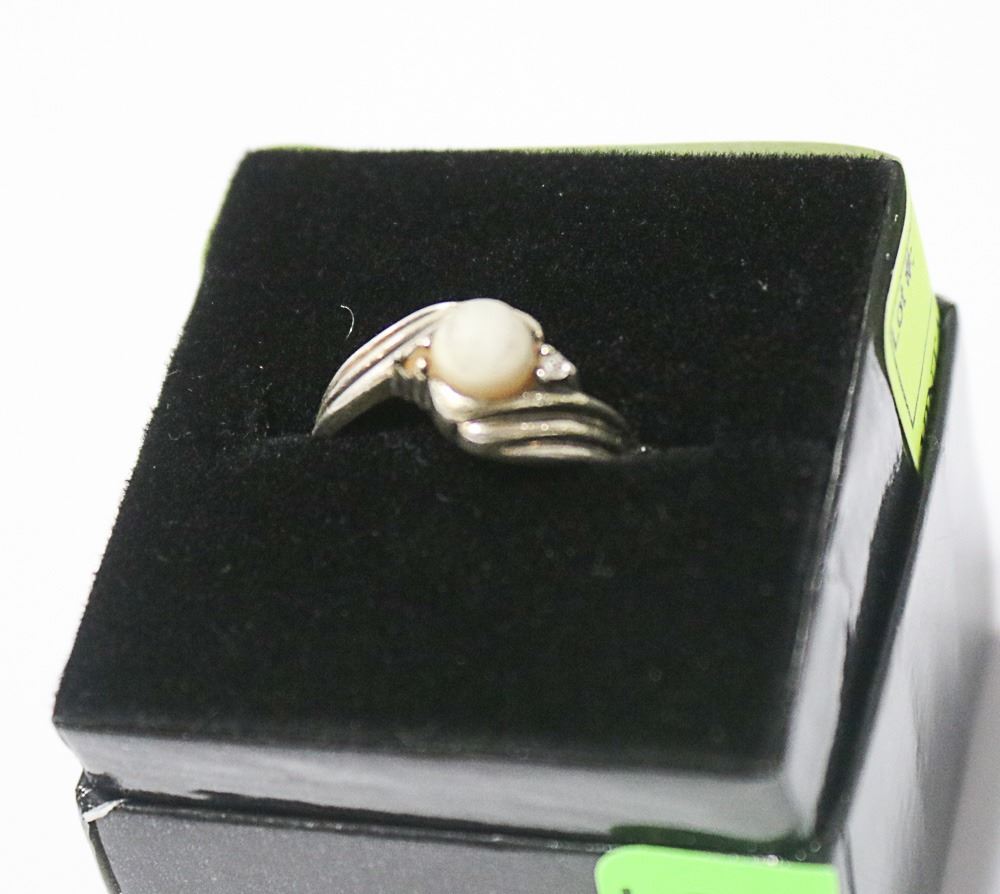 VINTAGE .925 STERLING SILVER & PEARL RING SZ 8