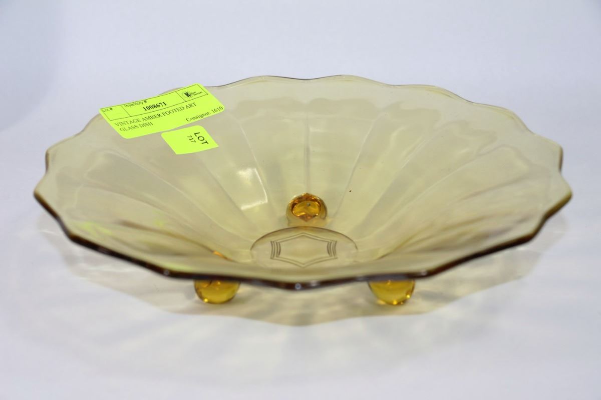 VINTAGE AMBER FOOTED ART GLASS DISH