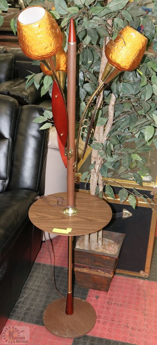 VINTAGE AMBER GLASS LEAF AND TABLE FLOOR LAMP