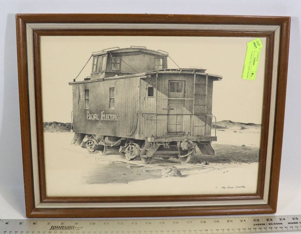"PACIFIC ELECTRIC TRAIN" 1921 PENCIL SKETCH 14 1/2 X 18 1/2. COLLECTIBLES