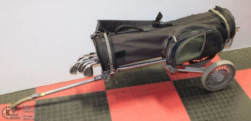 VINTAGE BAG BOY GOLF CART WITH SPALDING BAG & CLUB