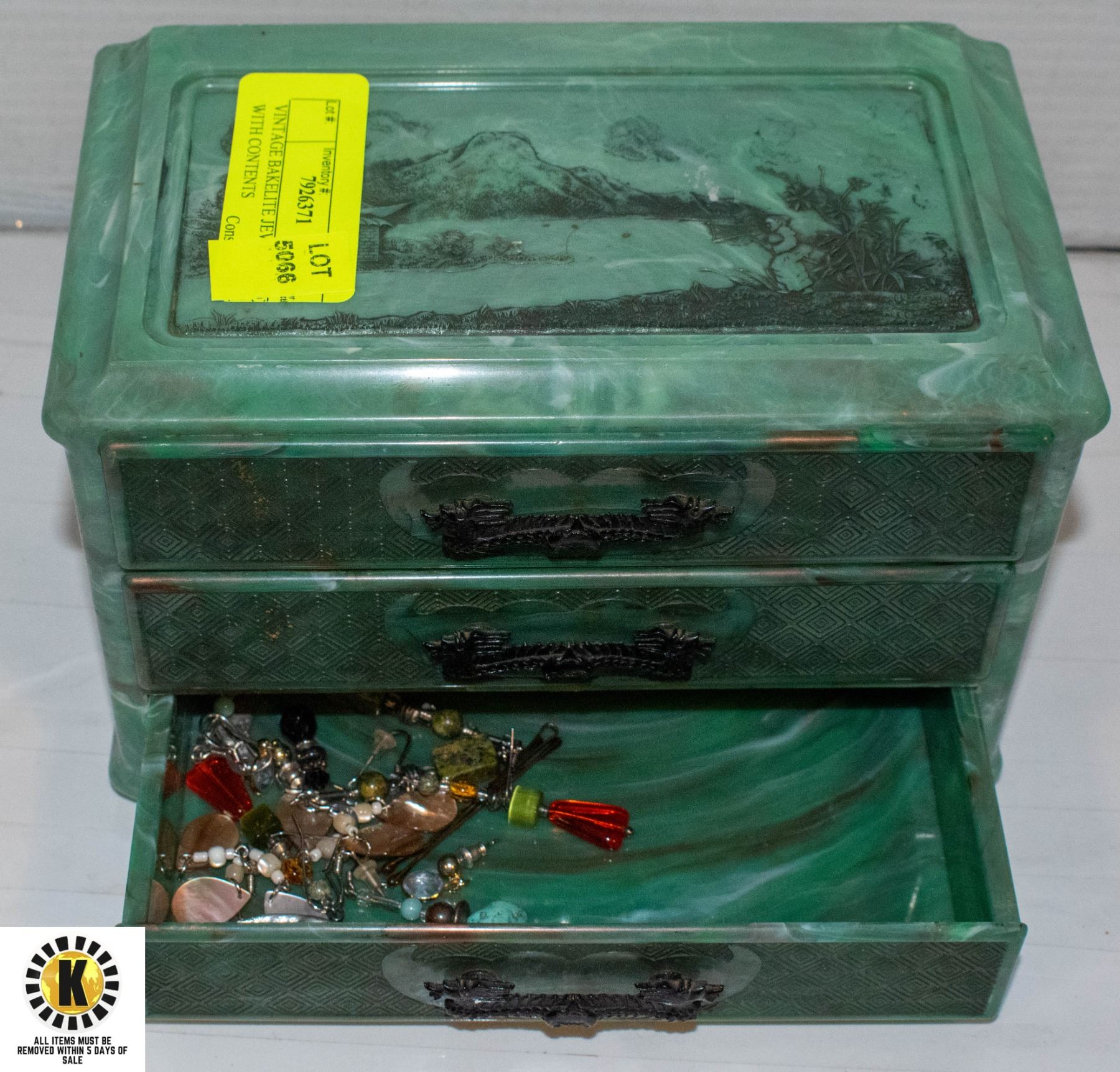 VINTAGE BAKELITE JEWELRY BOX WITH CONTENTS