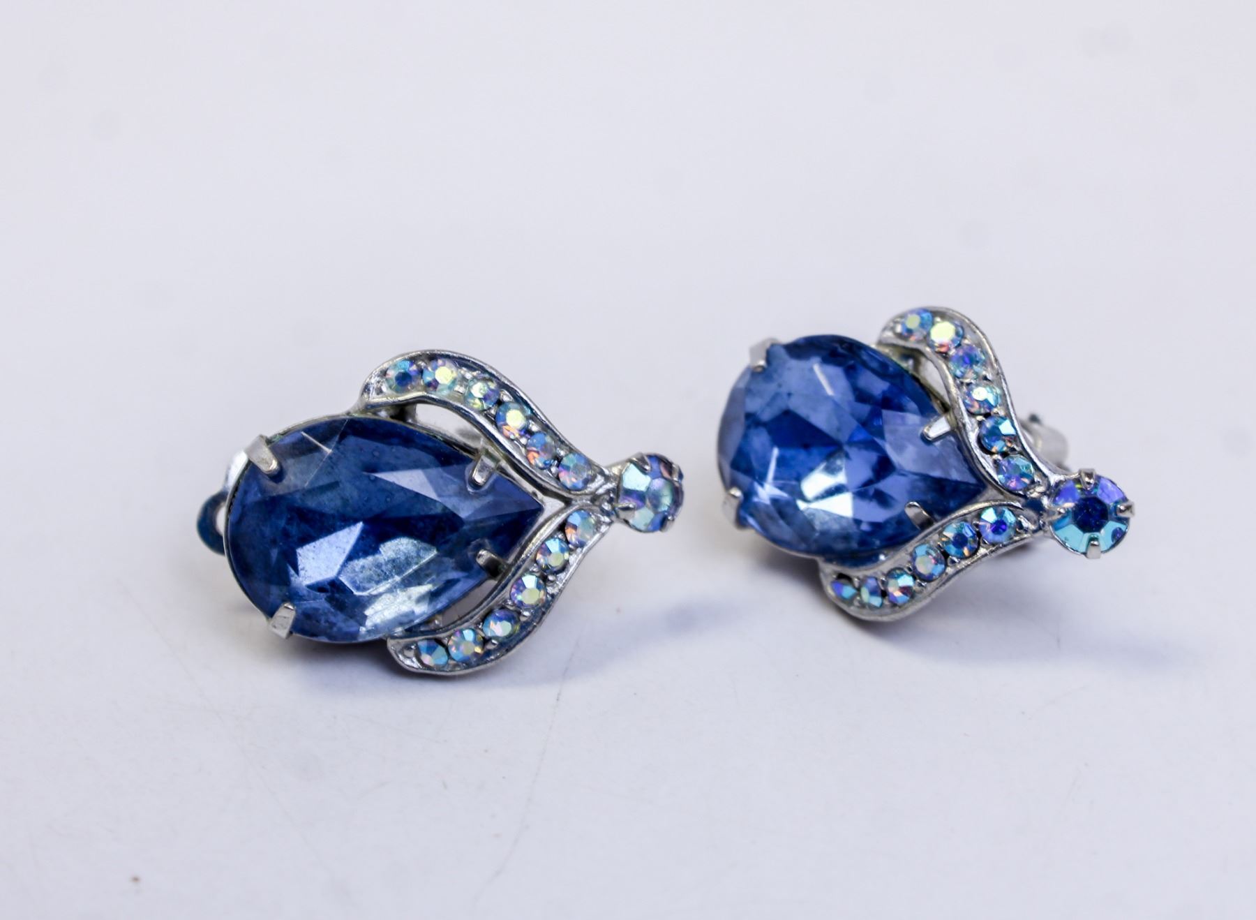 VINTAGE BLUE COSTUME JEWELLERY EARRINGS