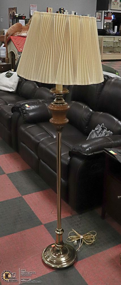 VINTAGE BRASS AND WOOD FLOOR LAMP 62 INCH TALL