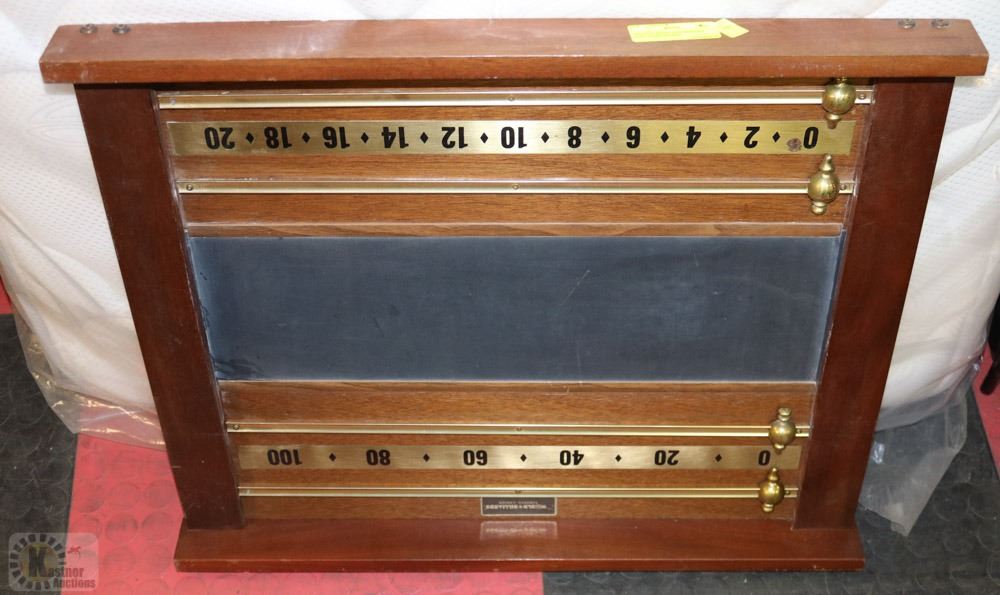 VINTAGE BRASS AND WOODEN POOL SCORE BOARD