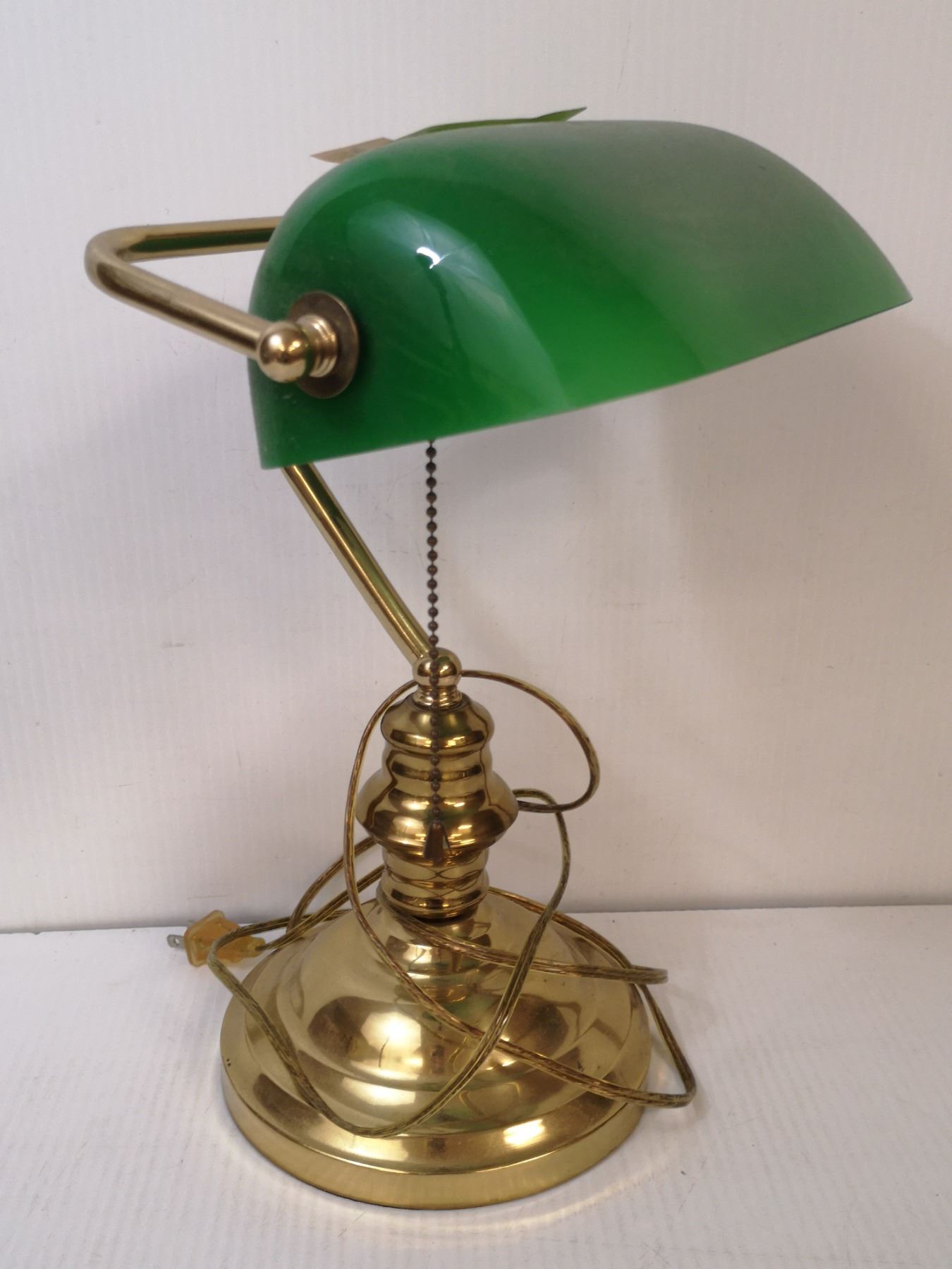 VINTAGE BRASS BANKERS DESK LAMP GREEN GLASS SHADE